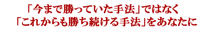 ・今まで勝っていた手法ではなく、これからも勝ち続ける手法とは?